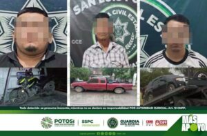 S.L.P.- Derivado de los operativos de seguridad, que son efectuados por la Guardia Civil Estatal (GCE) para inhibir actos ilícitos, tres hombres fueron detenidos, por