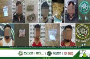 S.L.P.- Derivado de los operativos de seguridad efectuados por la Guardia Civil Estatal (GCE) en todo el estado, en distintas acciones, 20 personas resultaron detenidas,