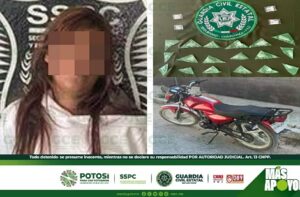 La mujer podría estar vinculada a la venta de estupefacientes para una supuesta célula criminal en la región Altiplano. Matehuala, S.L.P.- Como resultado del operativo
