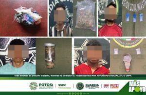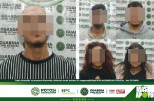 San Luis Potosí, S.L.P.- En el marco de las acciones dispuestas para inhibir delitos patrimoniales, oficiales de la Guardia Civil Estatal (GCE) detuvieron a cinco