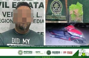 Rioverde, S.L.P.- En el marco de las acciones operativas desdobladas para el combate al narcomenudeo en la zona Media, un presunto integrante de una red