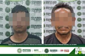 S.L.P.- Como resultado de la atención a las llamadas de auxilio, atendidas en la Línea de Emergencias 9-1-1, dos hombres resultaron detenidos por la Guardia