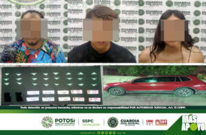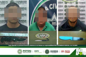 San Luis Potosí, S.L.P.- Como resultado de los trabajos operativos, desarrollados por oficiales de la Guardia Civil Estatal (GCE) tres hombres fueron detenidos por el