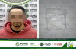 San Luis Potosí, S.L.P.- Una denuncia emitida por personal de una plaza comercial, permitió que oficiales de la Guardia Civil Estatal (GCE) detuvieran a un