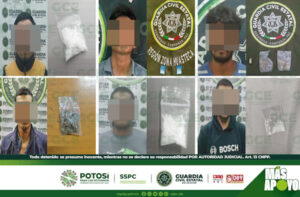 San Luis Potosí, S.L.P.- La aplicación del Plan Integral de Seguridad en todo el territorio potosino, permitió la detención de 12 personas por la presunta