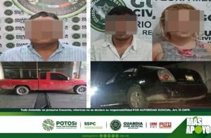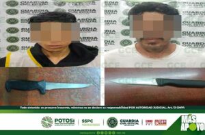 San Luis Potosí, S.L.P.- Derivado de los patrullajes preventivos, efectuados en la capital potosina por agentes de la Guardia Civil Estatal (GCE), dos hombres resultaron