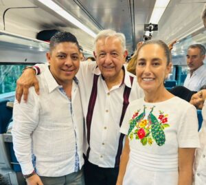 El Presidente de México Andrés Manuel López Obrador inaugura el nuevo Tren P’atal, con recorrido de Cancún a Mérida, acompañado por la Presidenta Electa Claudia