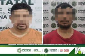 S.L.P.- Ante la oportuna denuncia de los casos de violencia, autoridades de Guardia Civil Estatal (GCE) atendieron los reportes y detuvieron a dos hombres quienes