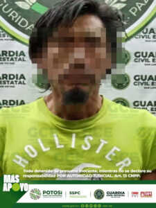 San Luis Potosí, S.L.P.- Oficiales de la Guardia Civil Estatal (GCE) detuvieron a un presunto luego de que la parte afectada lo señalara de haber