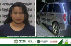 San Luis Potosí, S.L.P.- Elementos de la Guardia Civil Estatal detuvieron al conductor de un vehículo por su presunta participación en un hecho de tránsito