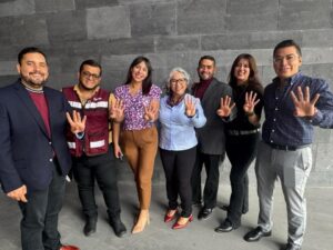 Tras una rueda de prensa, la Presidenta del Comité Ejecutivo Estatal de MORENA en San Luis Potosí, Rita Ozalia Rodríguez, junto con los Diputados de