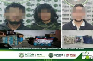 S.L.P.- Patrullajes preventivos efectuados en la capital potosina, dieron como resultado la detención de tres masculinos, después de que agentes de la Guardia Civil Estatal