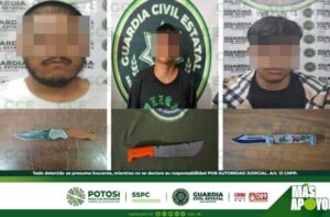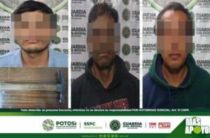 S.L.P.- Derivado de los operativos de seguridad que son efectuados por la Guardia Civil Estatal (GCE), tres hombres resultaron detenidos, por el presunto delito de
