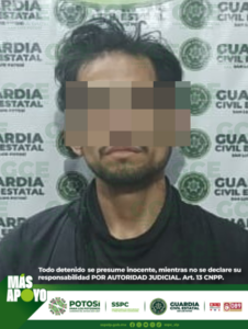 San Luis Potosí, S.L.P.- Una denuncia ciudadana movilizó a la Guardia Civil Estatal (GCE), hacia la colonia San Alberto, en donde detuvieron a un masculino,