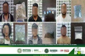 -Dos de los detenidos fueron ubicados a los alrededores de la FENAPO, en la probable posesión de narcóticos, siendo detenidos de inmediato. S.L.P.- Mediante reportes