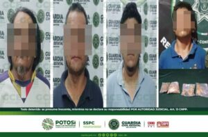 S.L.P.- Derivado de la atención inmediata a llamadas de auxilio recibidas en la Línea de Emergencias 911, cuatro presuntos agresores fueron detenidos por la Guardia