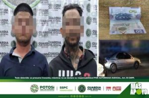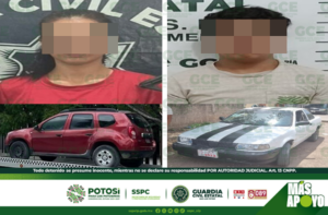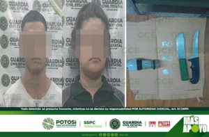 San Luis Potosí, S.L.P.- Operativos de seguridad, efectuados en la zona metropolitana, por agentes de la Guardia Civil Estatal (GCE), permitieron la detención de dos