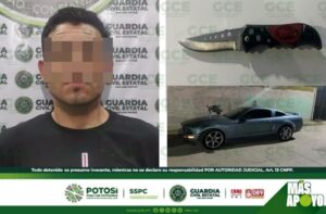 EN LA CAPITAL POTOSINA, PRESUNTO ES DETENIDO POR GUARDIA CIVIL ESTATAL CON ARMA PUNZOCORTANTE