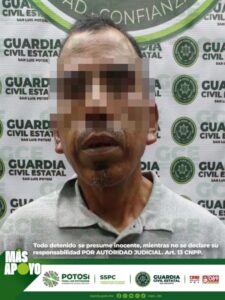 S.L.P.- En seguimiento a los reportes atendidos sobre casos de violencia familiar, elementos de la Guardia Civil Estatal (GCE) detuvieron a cuatro hombres, denunciados por