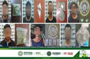 S.L.P.- Acciones preventivas y disuasivas desplegadas en las cuatro regiones, permitieron que durante las últimas 24 horas fueran detenidas 13 personas por agentes de la