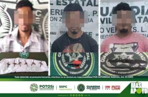 S.L.P.- En diferentes acciones, agentes de la Guardia Civil Estatal (GCE), detuvieron a tres presuntos criminales, luego de que se les aseguraran armas punzocortantes y