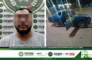 San Luis Potosí, S.L.P.- Agentes de la Guardia Civil Estatal (GCE), detuvieron a un automovilista por presuntos delitos contra la seguridad de tránsito, en la