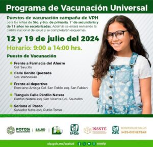 Durante el mes de julio se instalarán puestos de vacunación contra VPH en puntos estratégicos de la capital potosina, Soledad y Villa de Pozos, visita redes