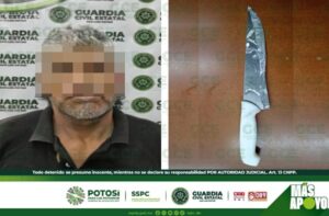 -Se le aseguró un cuchillo con el que lesionó a una persona. San Luis Potosí, S.L.P.- Elementos de la Guardia Civil Estatal aseguraron a un
