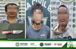 Uno de los presuntos llevaba consigo un cuchillo de cocina. S.L.P.- Como parte de las labores preventivas y de seguridad que implementa la Guardia Civil