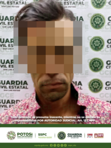 San Luis Potosí, S.L.P.- Derivado de los trabajos preventivos y disuasivos, efectuados por la Guardia Civil Estatal (GCE), un hombre resultó detenido por presuntos delitos