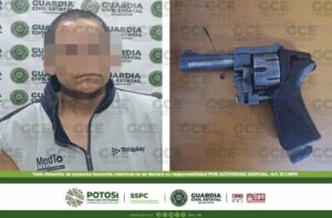 -El presunto cuenta con un amplio historial criminal y se le aseguró un arma de fuego artesanal. San Luis Potosí, S.L.P.- Una alerta emitida a