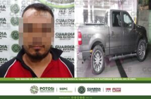 S.L.P.- Como parte de la aplicación del Plan Integral de Seguridad implementado en todo el territorio potosino, agentes de la Guardia Civil Estatal lograron detener