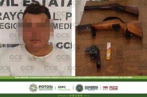 Lagunillas, S.L.P.- Un hombre que presuntamente portaba varias armas de fuego, fue detenido por elementos de la Guardia Civil Estatal en el municipio de Lagunillas