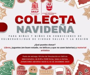 La Facultad de Estudios Profesionales de la Zona Huasteca (FEPZH) Campus Valles invita a la población a participar en la Colecta Navideña de Juguetes 2025,