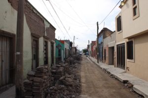 La Secretaría de Desarrollo Urbano, Vivienda y Obras Públicas concluyó el retiro de adoquín de forma manual para su resguardo y avanza con la reparación