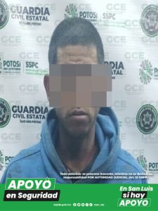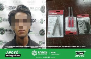 San Luis Potosí, S.L.P.- Gracias a la intervención de la Guardia Civil Estatal sobre un robo en proceso a un establecimiento comercial, se logró detener