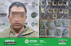 Santa María del Río, S.L.P.- Un probable integrante de una red delictiva fue detenido con dosis de marihuana y “cristal”, tras los operativos desplegados por
