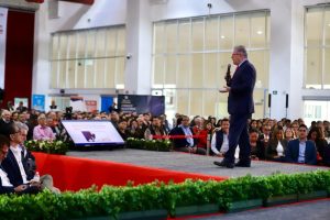 Durante su participación en la Feria de la Proveeduría destacó el trabajo del Presidente municipal Enrique Galindo y destacó lo próspero de la comunidad potosina.