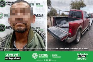 San Luis Potosí.- Elementos de la Guardia Civil Estatal aseguraron a un hombre acusado de causar lesiones y daños en la delegación de Villa de