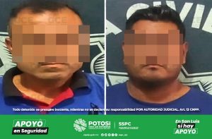 S.L.P.- Elementos de la Guardia Civil Estatal detuvieron a dos hombres acusados de violencia familiar, como parte de las acciones preventivas y de seguridad que