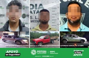 SanLuisPotosí, SLP.- La aplicación del Plan Integral de Seguridad por parte de la Guardia Civil Estatal (GCE) permitió la detención de cuatro hombres, tres de