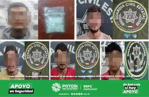 S.L.P.- En diferentes acciones operativas, elementos de Guardia Civil Estatal (GCE) detuvieron a 10 personas tras sorprenderlos con probables dosis de narcóticos, ante ello se