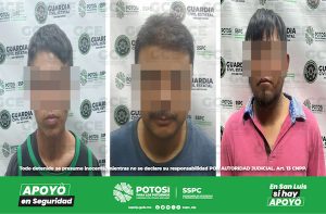 San Luis Potosí, S.L.P.- Distintos operativos de seguridad, emitidos por agentes de la Guardia Civil Estatal (GCE) permitieron la detención de seis hombres en diferentes