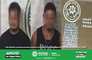 Tamazunchale, S.L.P.- Gracias a los trabajos coordinados entre la Guardia Civil Estatal (GCE) y mediante reportes de la ciudadanía, se logró la captura de dos