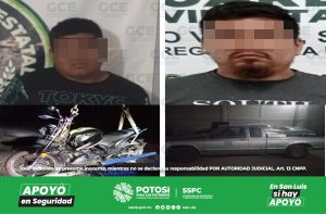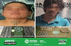S.L.P.- Tras los operativos de seguridad desplegados por agentes de la Guardia Civil Estatal (GCE), dos probables vendedores de droga fueron detenidos, derivado de ello