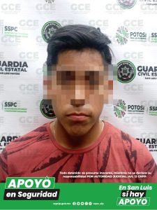 San Luis Potosí, S.L.P.- La intervención inmediata de la Guardia Civil Estatal (GCE) ante un reporte ciudadano sobre violencia familiar, permitió la detención de un