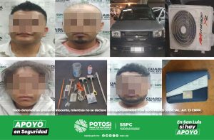 San Luis Potosí, S.L.P.- Policías de la Guardia Civil Estatal (GCE) detuvieron a cuatro personas en diferentes acciones operativas, por el probable delito de robo;