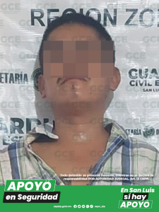 S.L.P.- En el municipio de Cerritos elementos de la Guardia Civil Estatal (GCE) detuvieron a un hombre presuntamente señalado de agredir a un familiar, derivado
