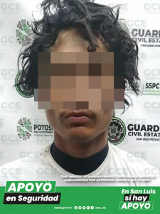 Soledad de Graciano Sánchez, S.L.P.- Gracias al reporte oportuno de un ciudadano, agentes de la Guardia Civil Estatal (GCE), lograron detener a un individuo que