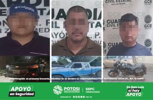 S.L.P.- Dispositivos de seguridad y vigilancia, efectuados en la zona centro de Matehuala, Cárdenas y Rioverde, permitieron la detención de tres conductores, luego de que